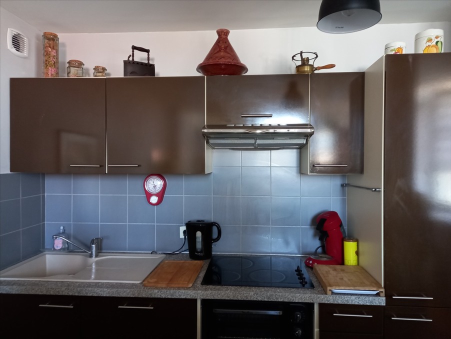 Une pièce de vie, cuisine équipée ouverte sur le séjour.