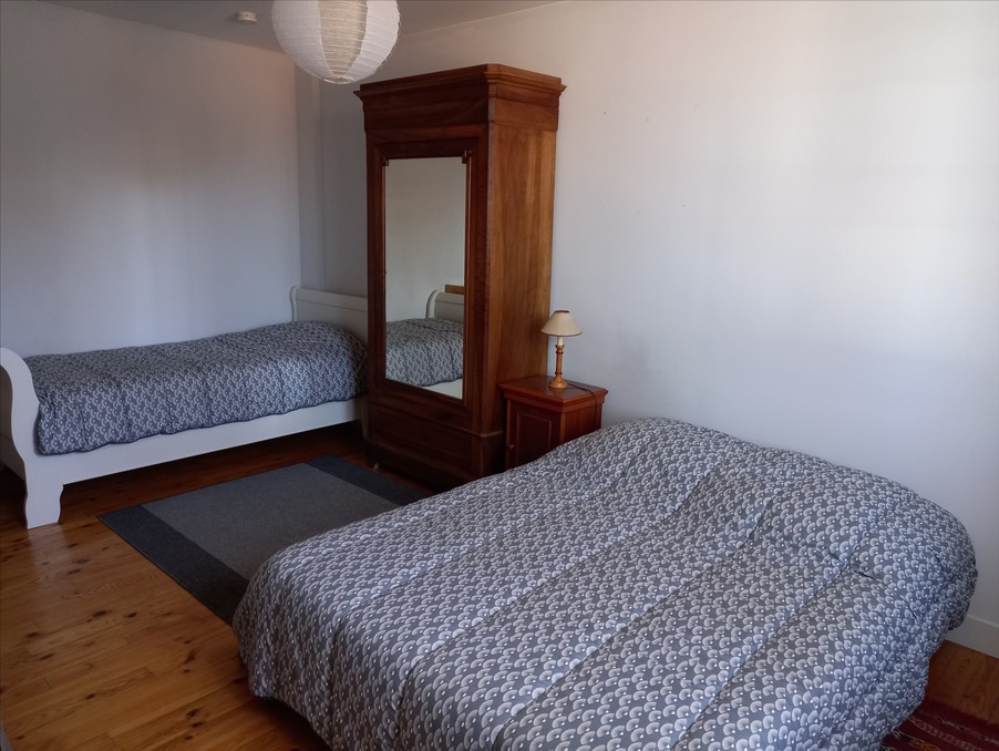 Une chambre avec un lit de 140 cm et un lit de 90 cm.