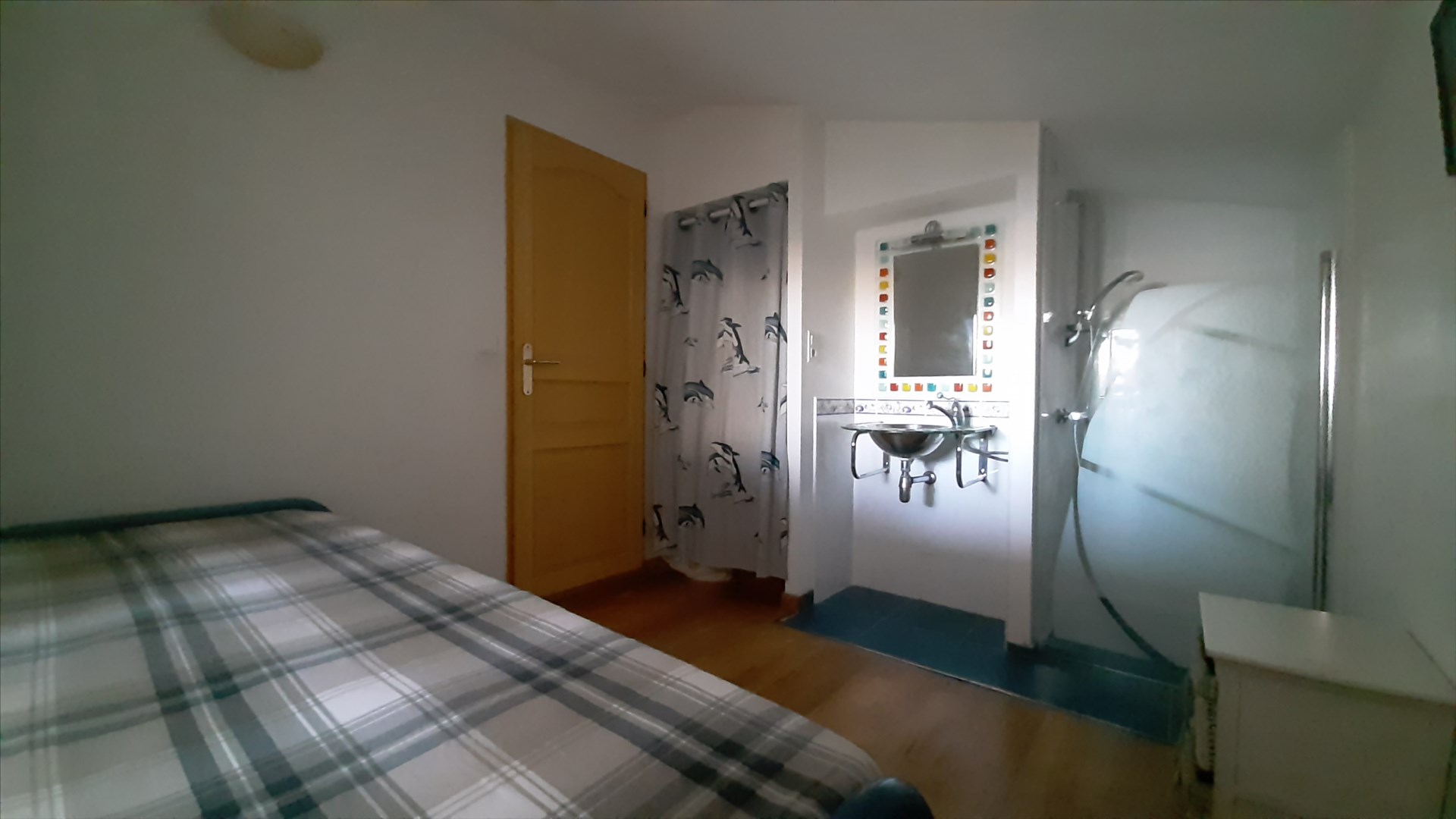 Une chambre avec un lit en 90 cm + lit tiroir en 90 cm et un coin douche.