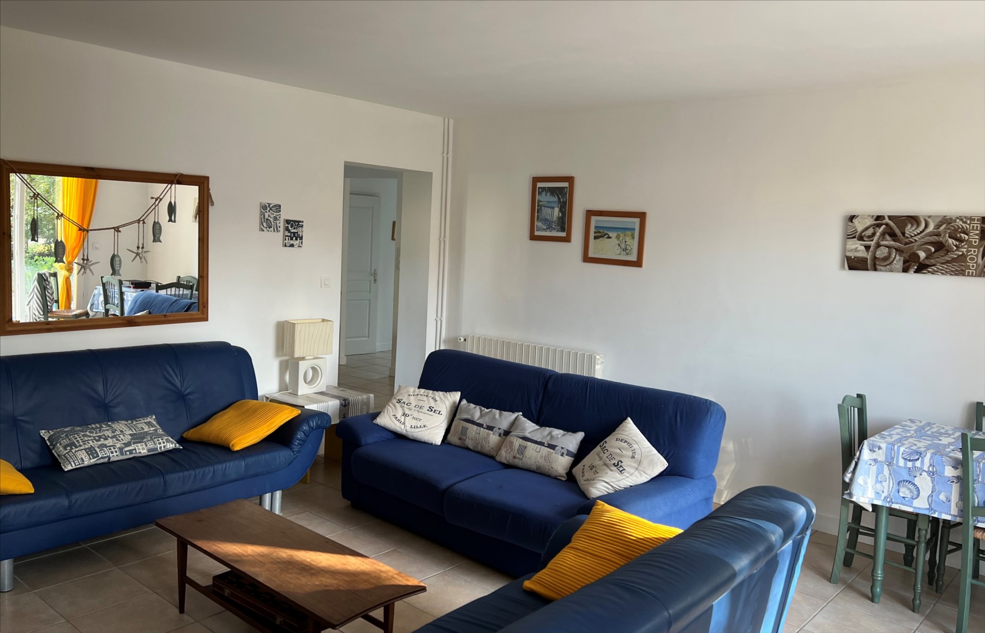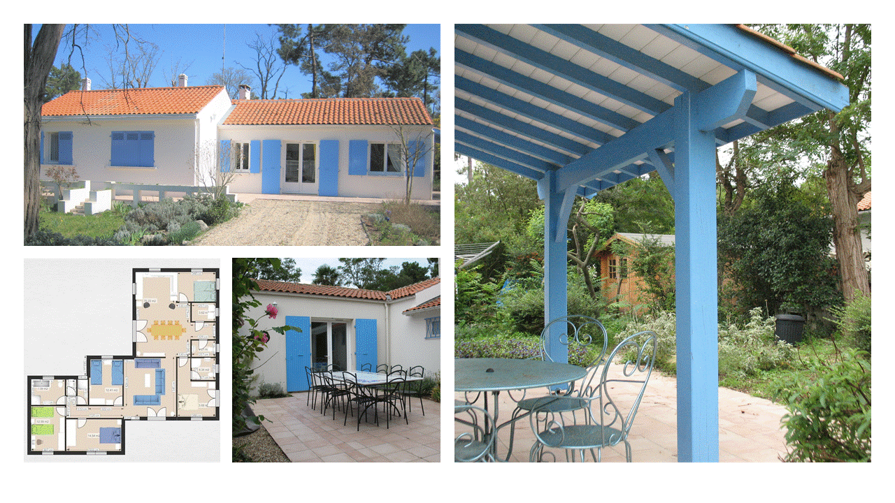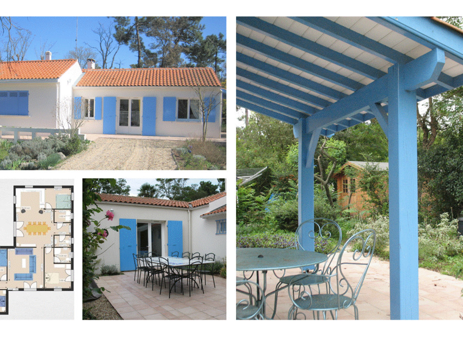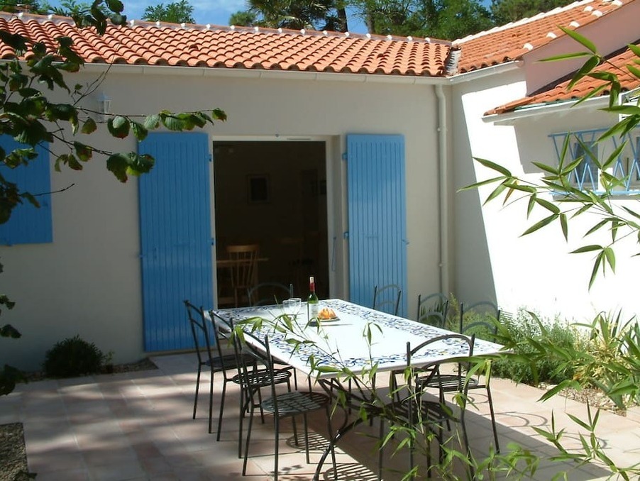 A Grand Village Plage, maison de plein pied avec un terrain clos et une grande terrasse pour les repas.