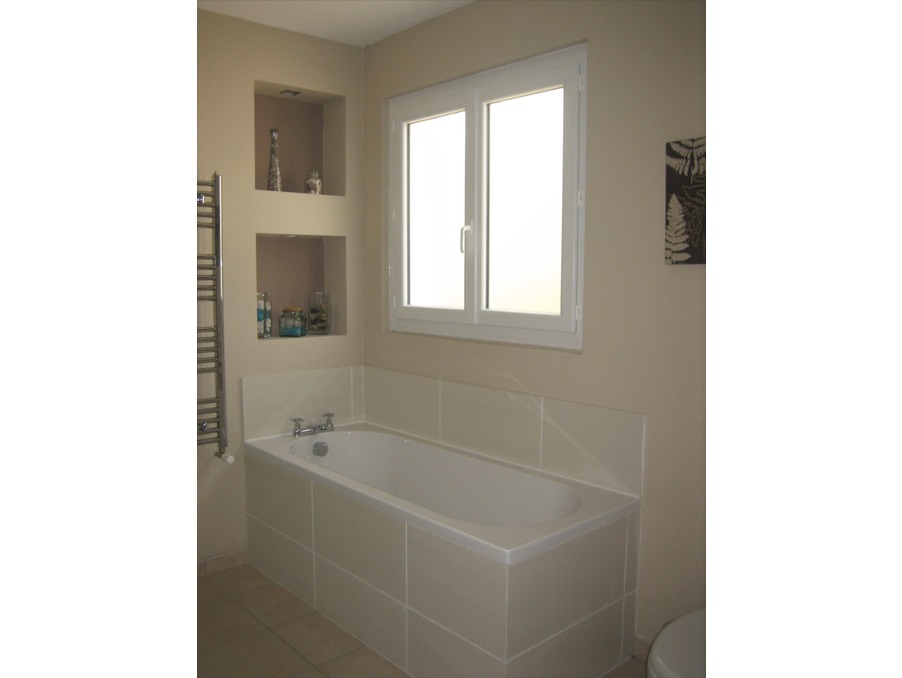 une salle de bains avec baignoire-douche wc , une salle d'eau, 2 wc indépendants.