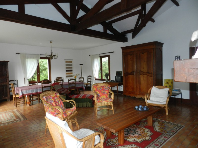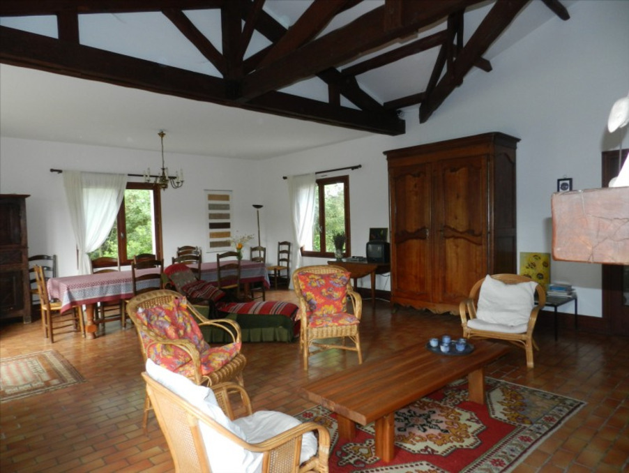 Un grand séjour salon de 60 m2 env. avec une partie salle à manger avec table à manger 10 places et une grande partie salon avec télévision écran plat (antenne parabolique).