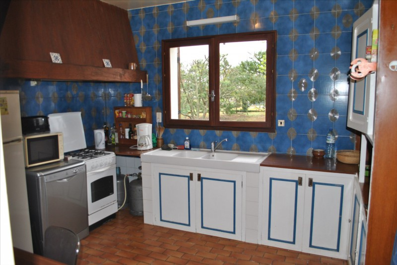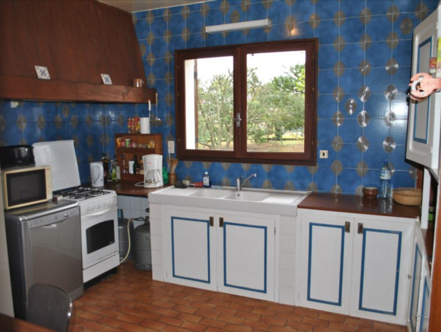 Une cuisine de 12 m2 env. avec réfrigérateur/ congélateur, four, micro ondes, lave vaisselle.