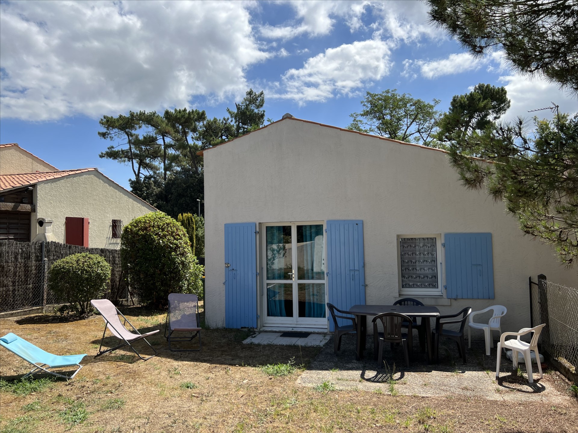 EQUIPEMENTS : Palque en vitrocéramique, four électrique, réfrigérateur avec compartiment congélateur, micro ondes, ustensiles, appareils petit électroménager de cuisine. TV. Lave linge.Meubles de jardin, parasol. Barbecue électrique.