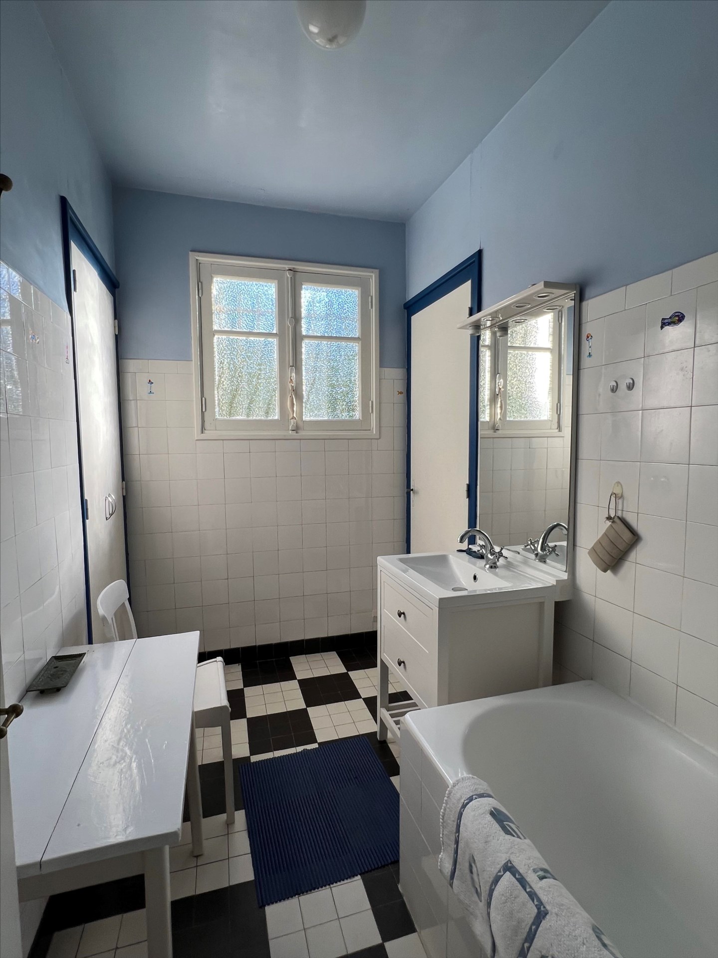 Une salle de bains avec wc séparé.