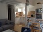 Maison mitoyenne avec terrain devant accessible à une voiture et jardinet derrière.