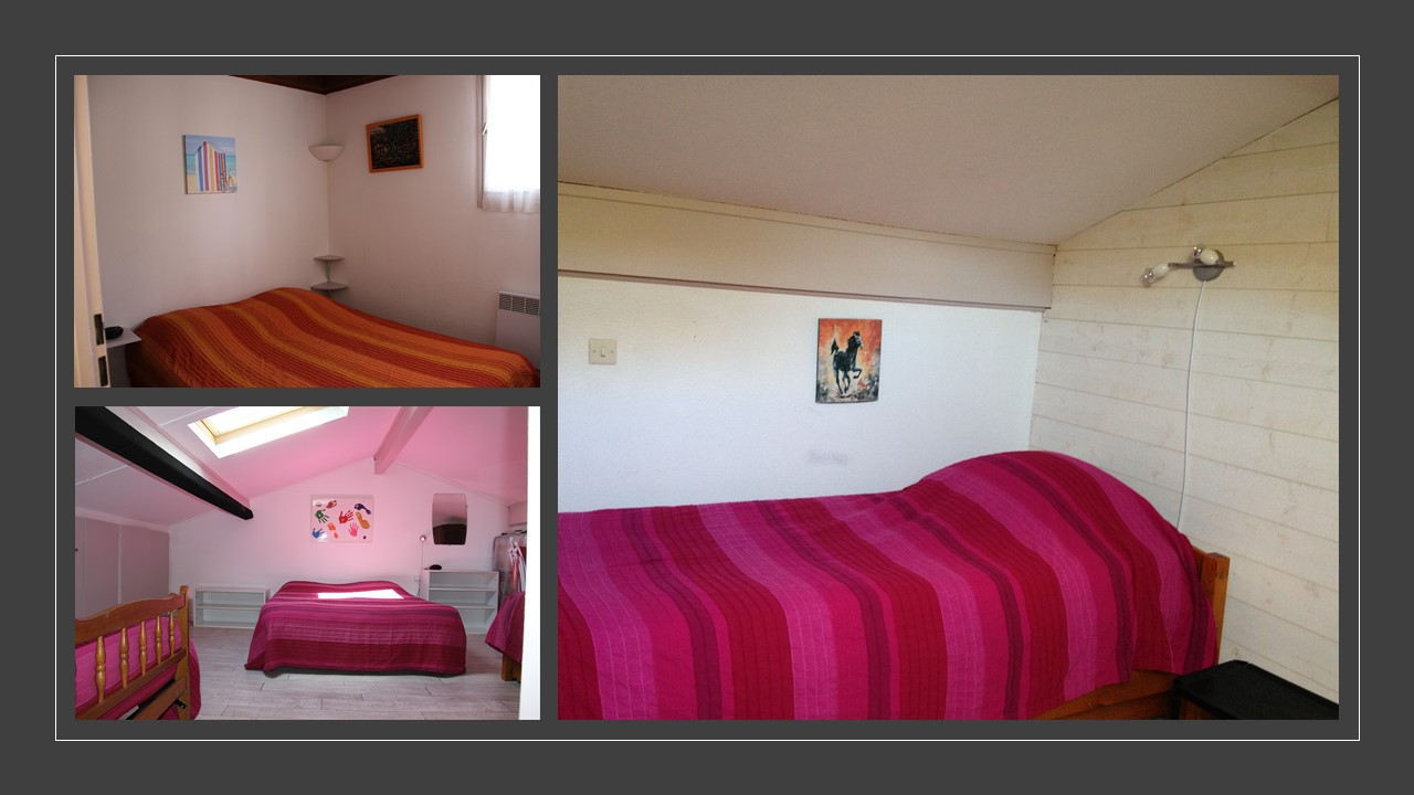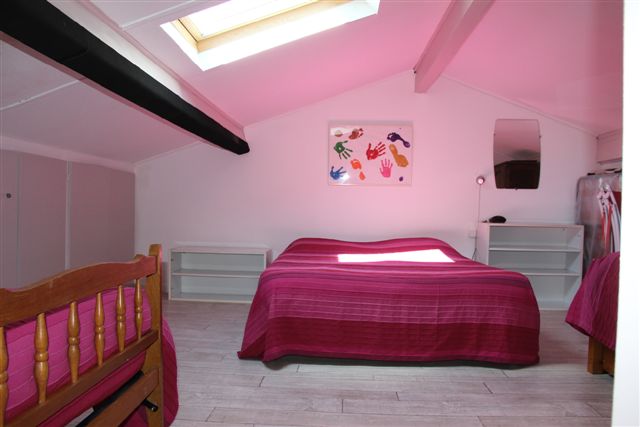 Etage mezzanine fermée une chambre avec 2 lits en 90 cm et un lit en 140 cm.