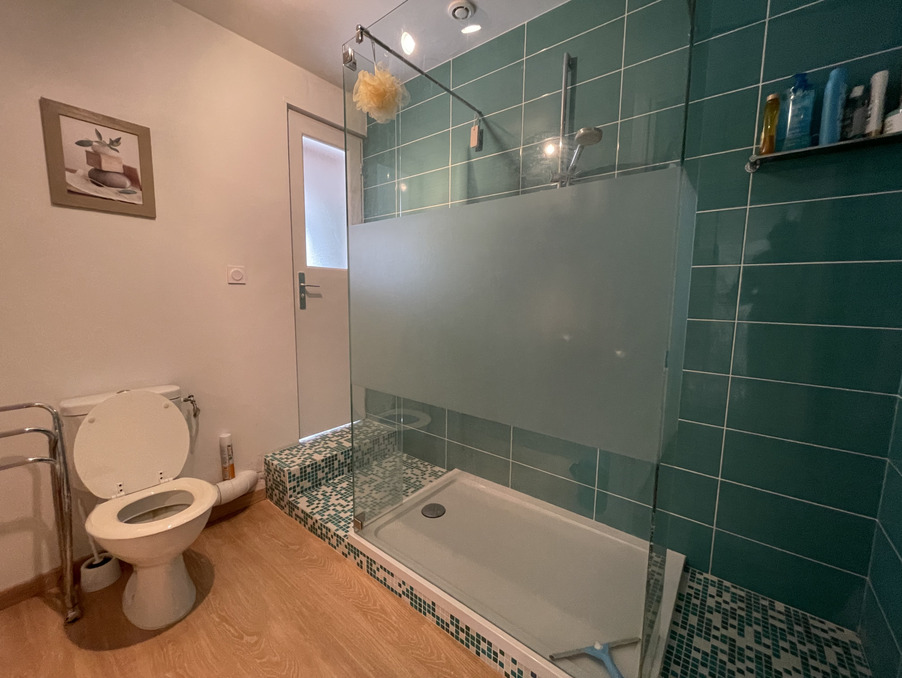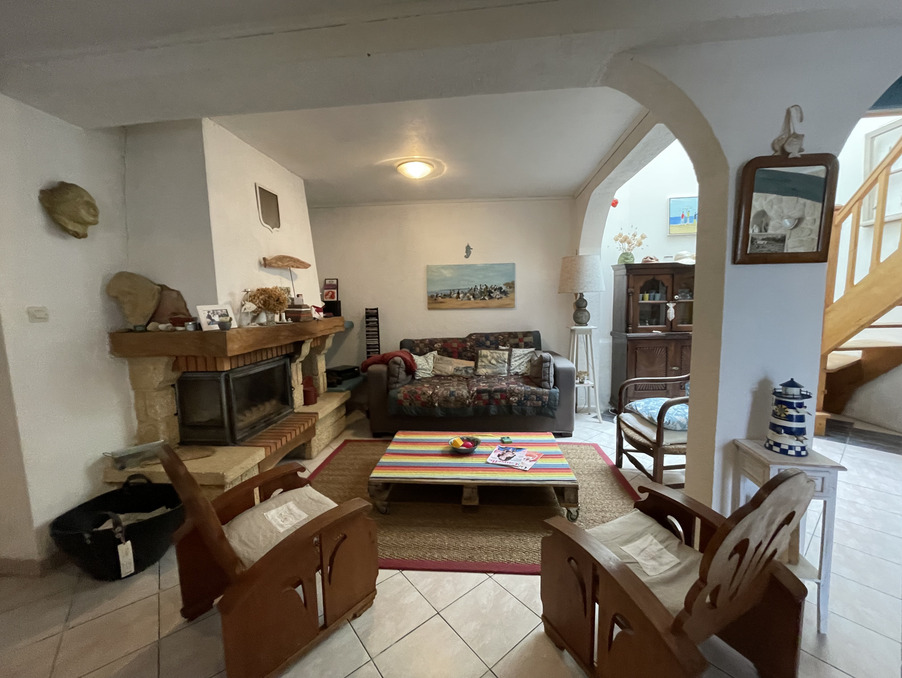 Au rez de chaussée :Un grand salon avec cheminée et cuisine ouverte, un wc séparé.