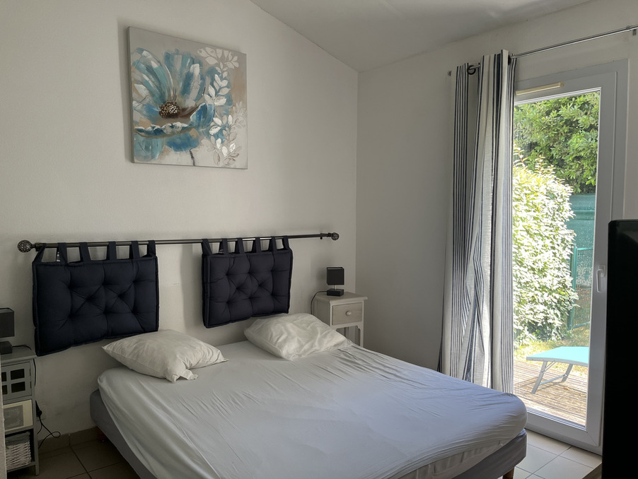 Au coeur d'une résidence avec piscine, charmante maison lumineuse et bien agencée pour recevoir Famille et Amis offant une agréable pièce de vie avec son espace cuisine aménagée, une chambre, une salle d'eau avec wc,