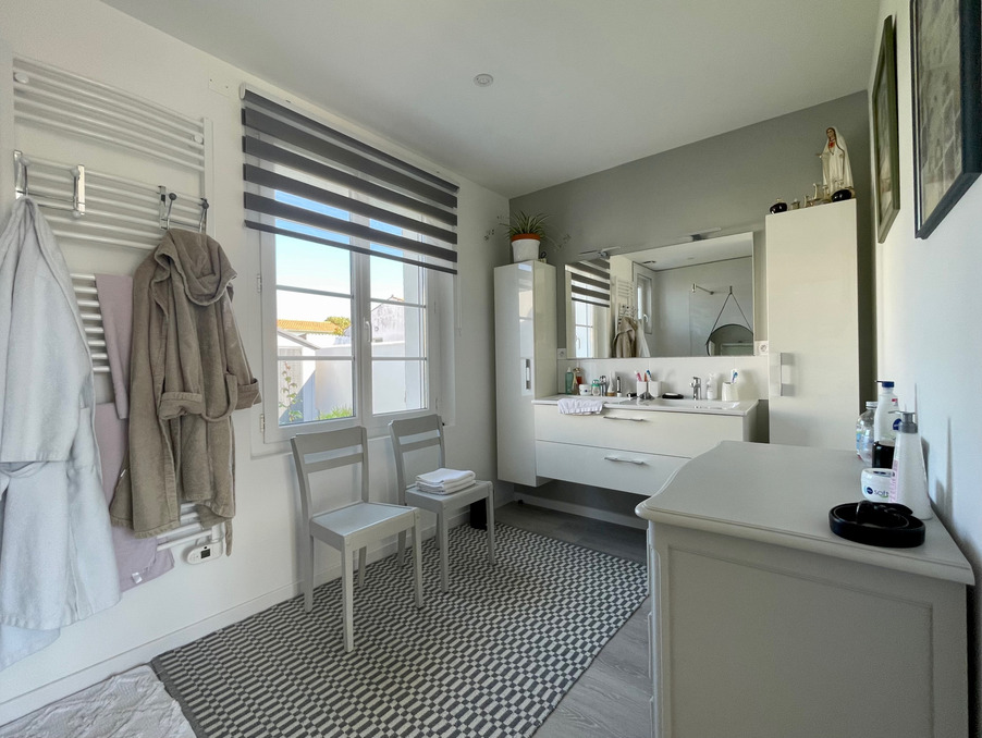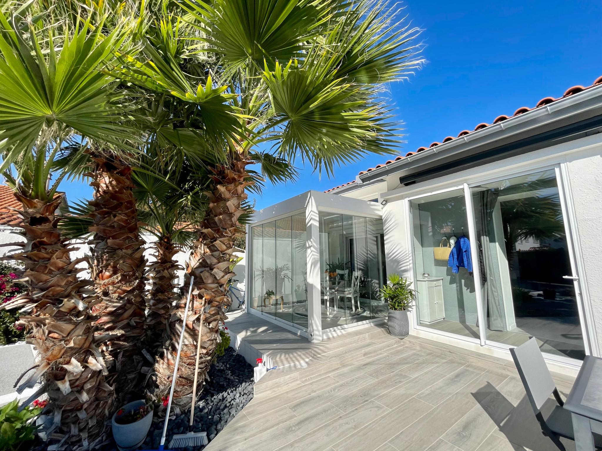 Elle offre une spacieuse et lumineuse pièce de vie, deux vérandas dont une bioclimatique, ainsi qu'une cuisine aménagée et entièrement équipée. Côté nuit, vous profiterez de deux suites parentales, chacune avec salle d'eau privative et wc, offrant intimité et confort.