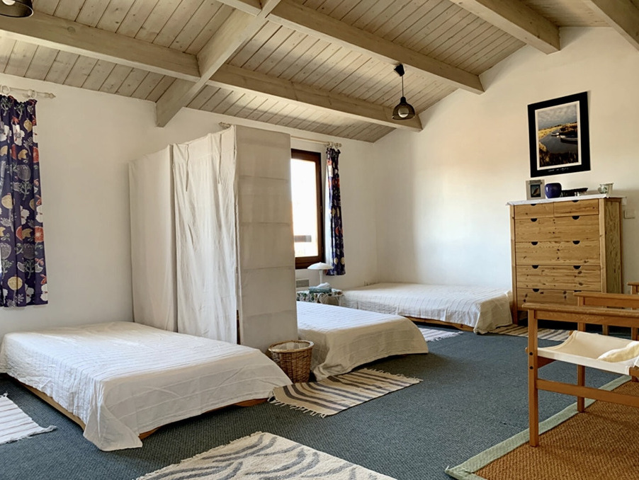 L'étage offre un grand espace nuit d'environ 30 m2 et une salle d'eau avec un wc.