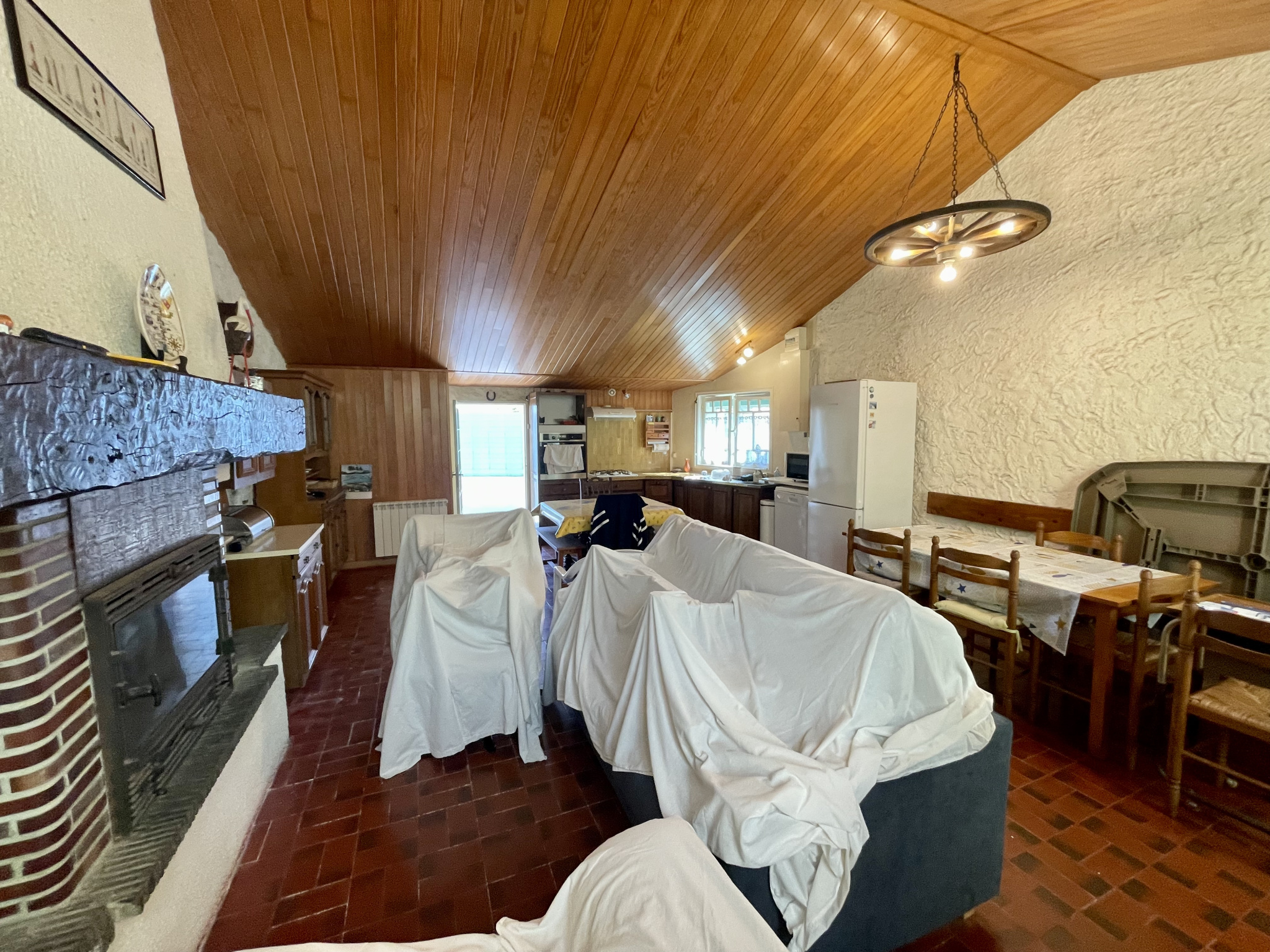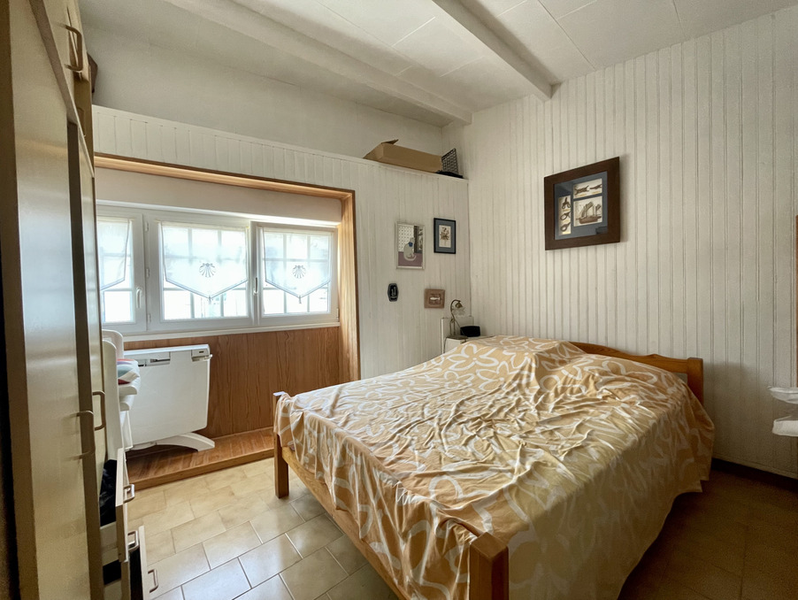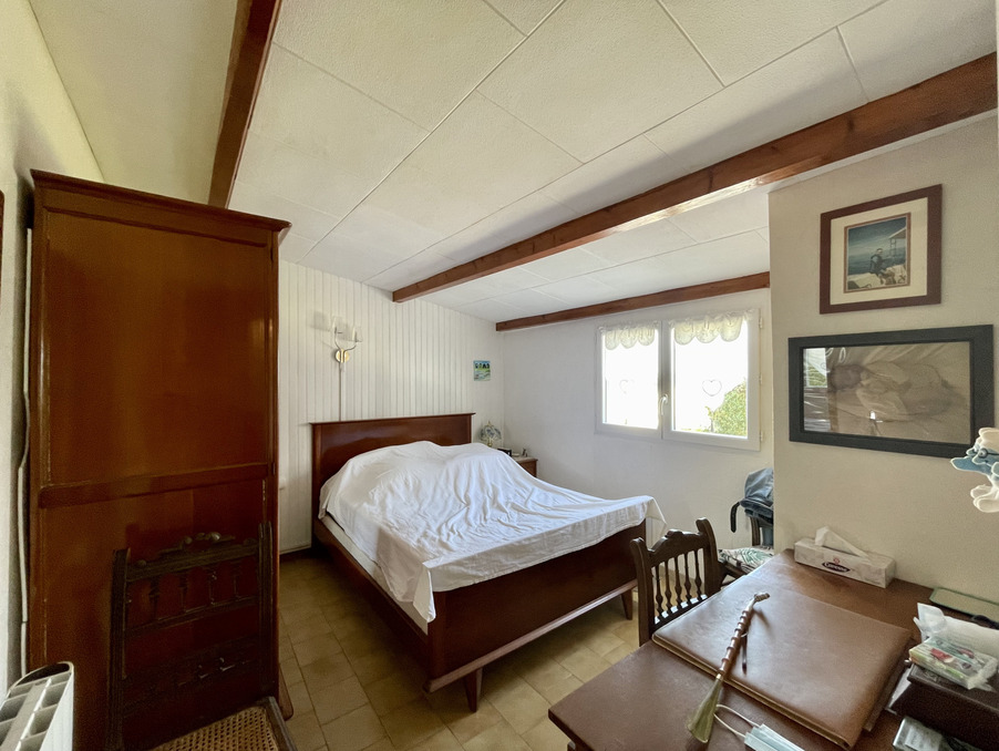 Idéalement située, face aux cabanes du port des Salines, cette maison de plain-pied offre un salon / salle à manger avec une cuisine ouverte et une cheminée, deux chambres, une salle d'eau et un wc séparé.