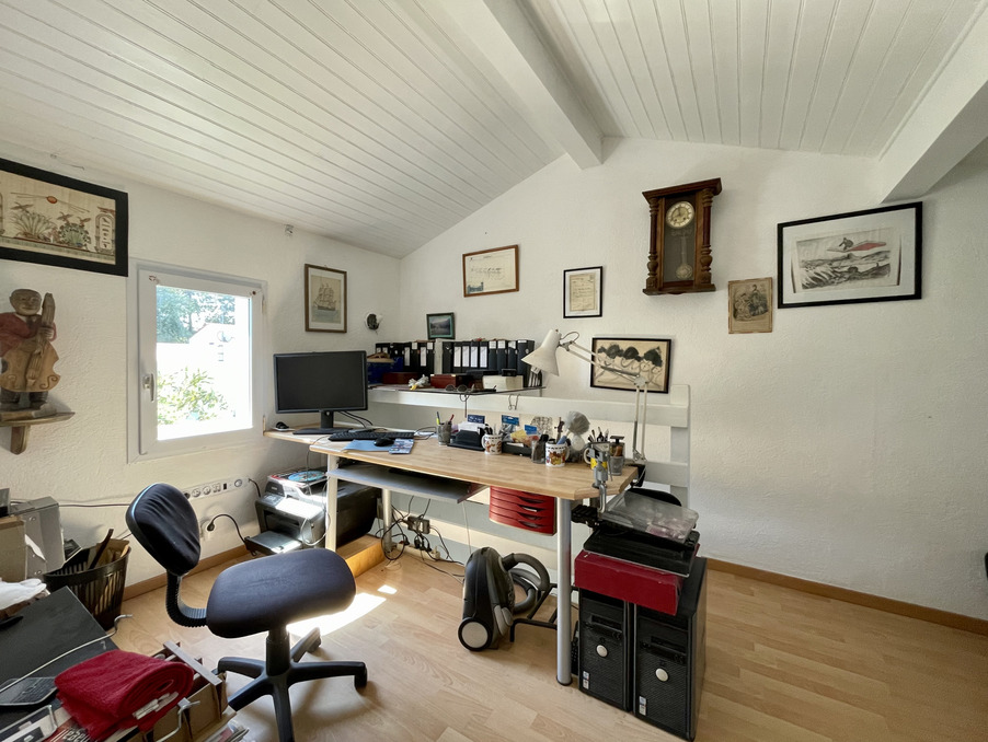 Maison de pays située dans un vieux bourg oleronais offrant : Un salon cheminée avec un coin cuisine aménagée ,une chambre , une salle d'eau , un wc . A l'étage ; Sous combles ,espaces nuits , une...