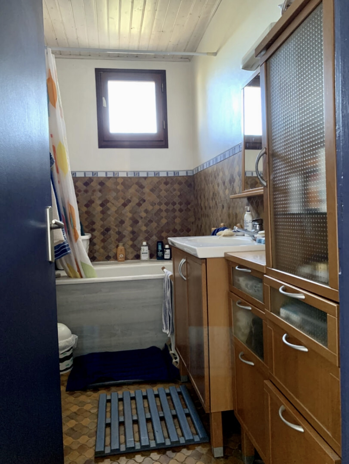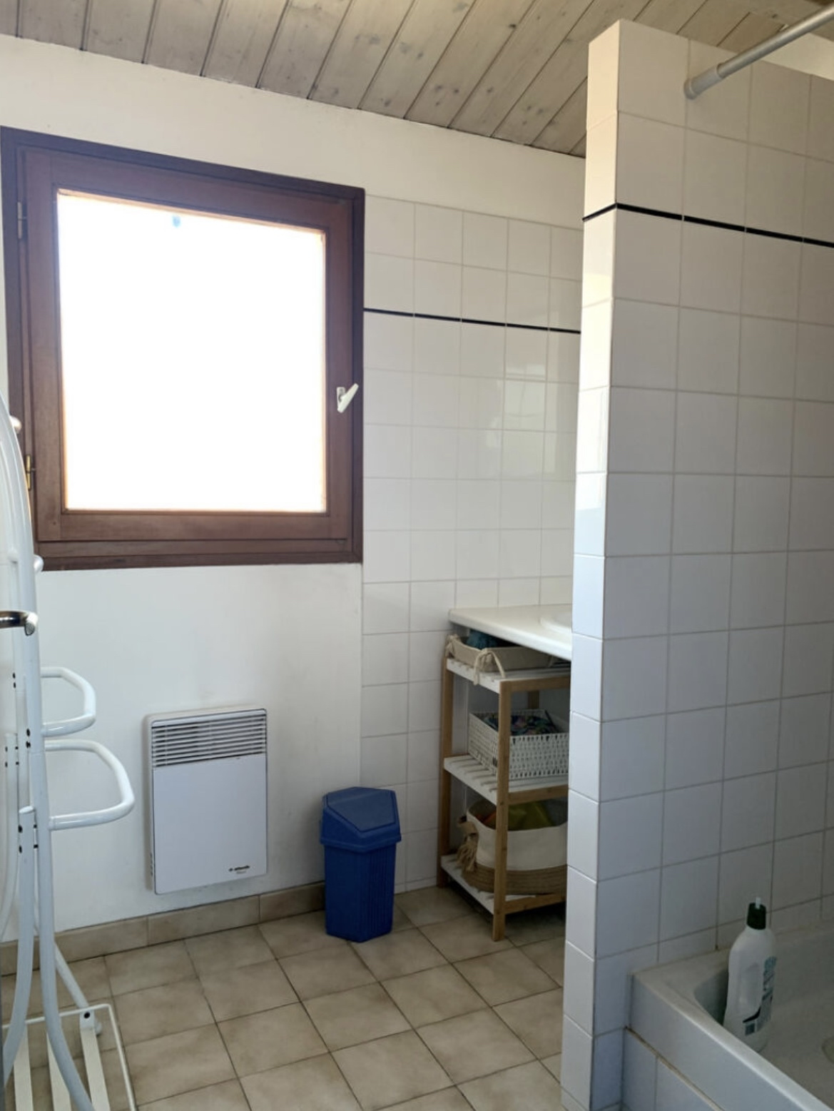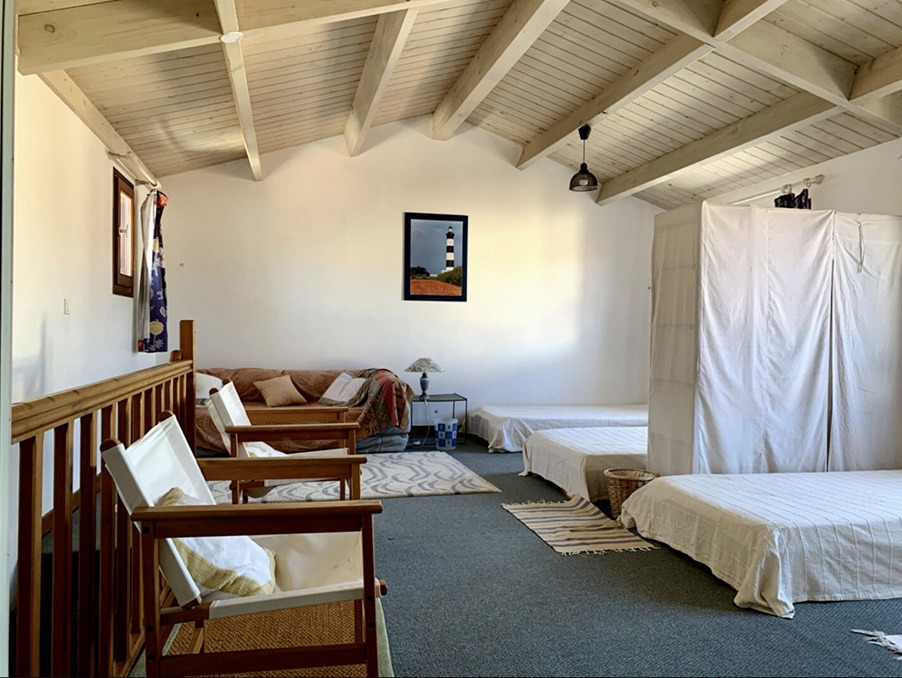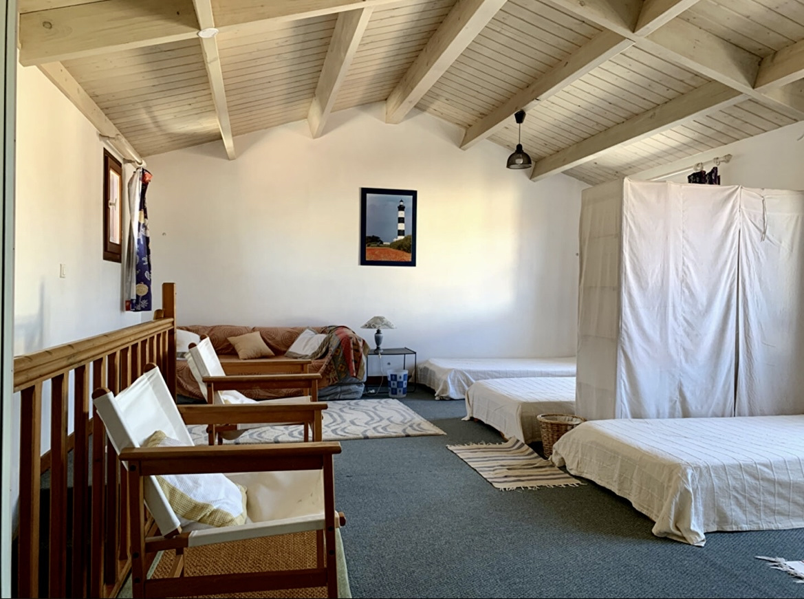 L'étage offre un grand espace nuit d'environ 30 m2 et une salle d'eau avec un wc.