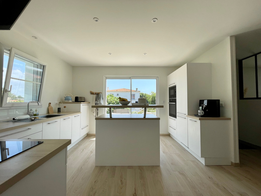 Située dans un environnement recherché, à seulement quelques pas de la plage et du port de La Cotinière, cette maison construite en 2022 allie confort moderne, matériaux nobles et emplacement idéal. Élevée sur deux niveaux, elle offre à l'étage une vaste pièce de vie baignée de lumière, avec un poêle à bois qui apporte chaleur et convivialité. La cuisine ouverte, entièrement aménagée et équipée, s'intègre harmonieusement à l'espace de vie. Ce niveau comprend également trois chambres, une salle d'eau et un WC indépendant.Le séjour s'ouvre sur une grande terrasse bien exposée, idéale pour profiter des beaux jours, avec une agréable vue sur le jardin soigneusement aménagé et arboré.Le rez-de-chaussée dispose également d'une grande pièce de vie avec un coin cuisine, d'une seconde salle d'eau, d'un WC, ainsi que d'un spacieux garage.L'ensemble est édifié sur un beau jardin clos, parfaitement entretenu, propice à la détente et à la vie en extérieur.