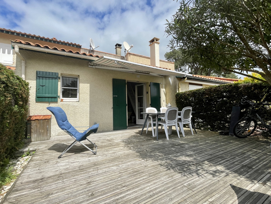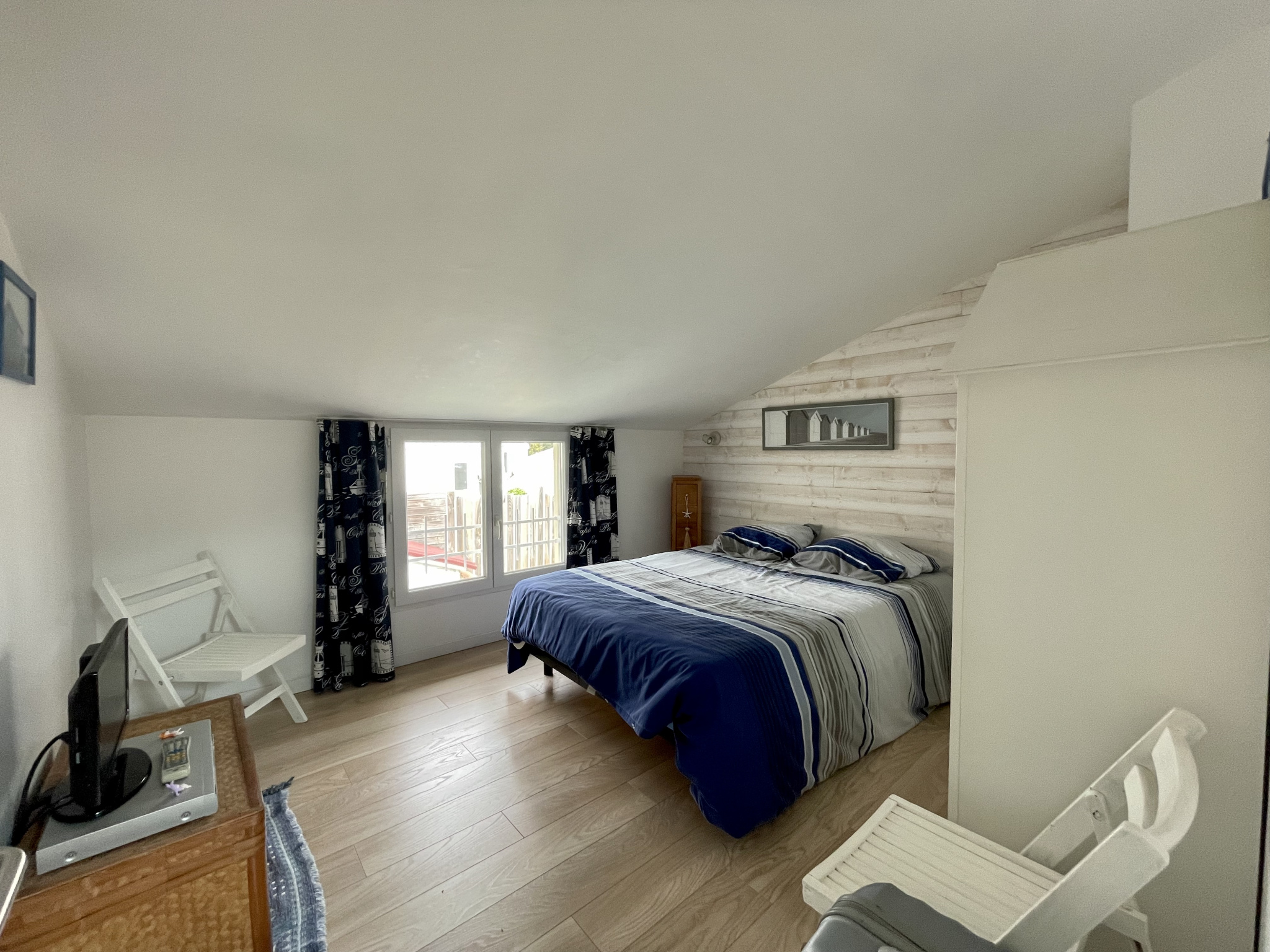 Idéalement située, face aux cabanes du port des Salines, cette maison de plain-pied offre un salon / salle à manger avec une cuisine ouverte et une cheminée, deux chambres, une salle d'eau et un wc s...