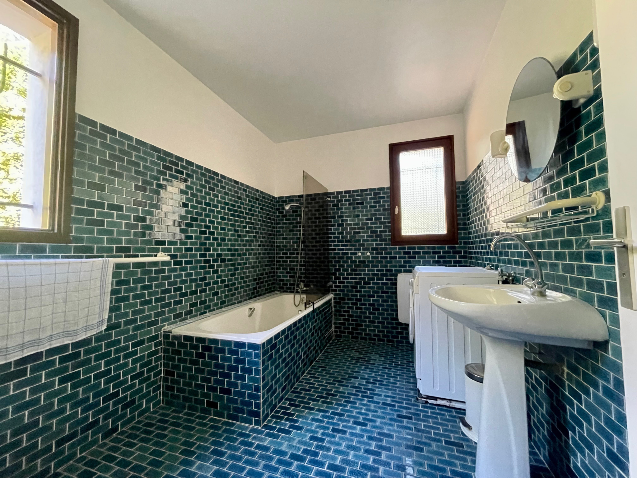 Un salon avec salle à manger cheminée de 45 m2 , une cuisine individuelle aménagée et équipée...